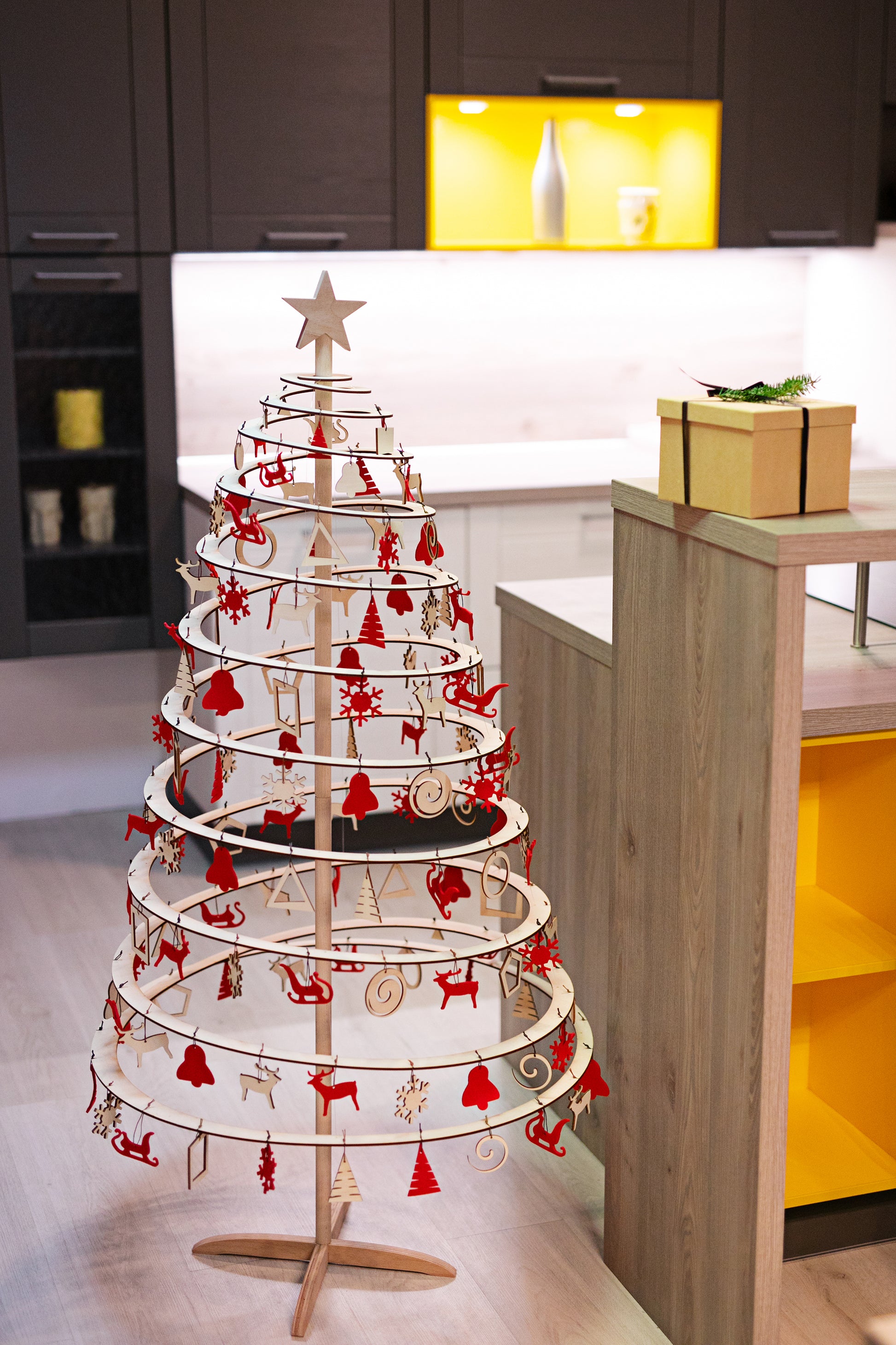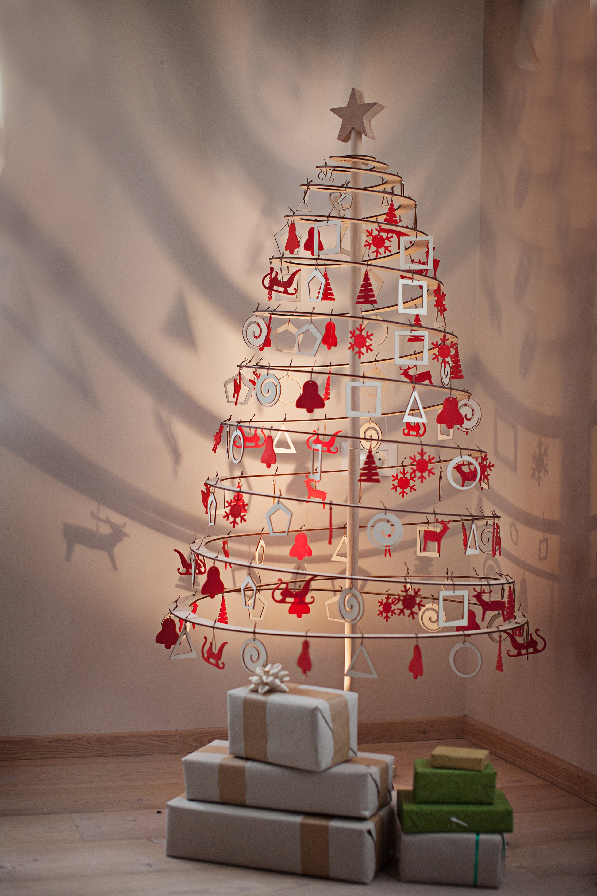 Det eneste sæt dekorationer, du har brug for. Blandingen af filt og træpynt er velegnet til alle størrelser af Spira juletræer. Naturmaterialer med dynamiske former vil bringe varme og glæde til dit hjem, og den røde farve vil skabe en livlig feststemning.